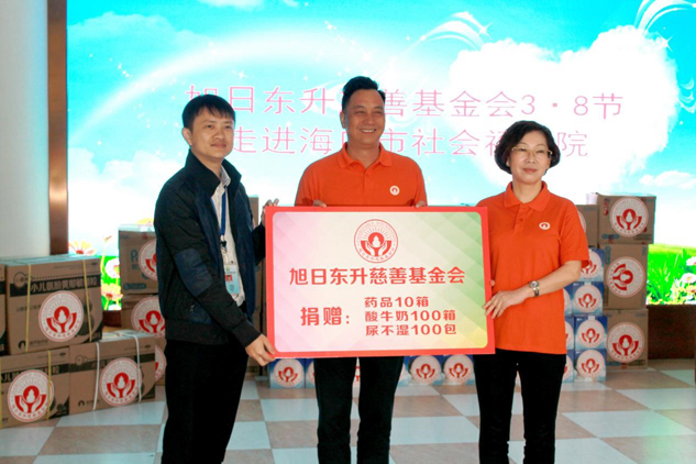 3月8日恰逢妇女节,旭日东升慈善基金会志愿者在理事长汤旭东先生和执行理事长刘景萍女士的带领下,来到海口市社会福利院开展以"我们的爱"为主题的送温暖活动,在为福利院的孩子们带去关怀和温暖的同时,也向福利院的老师们表达敬意与问候。